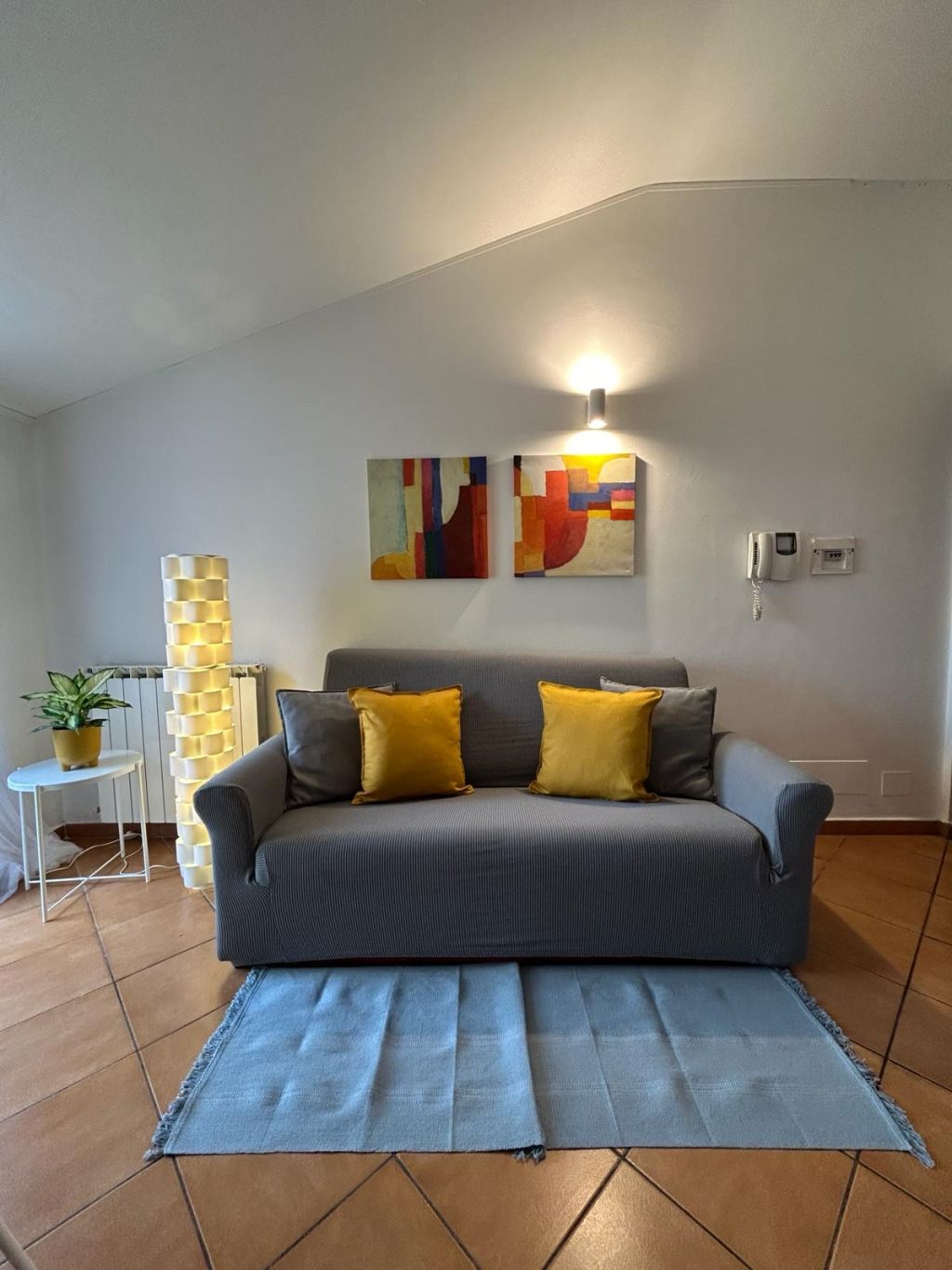 L'appartamento è composto da soggiorno, angolo cottura, camera, cameretta, bagno e un terrazzo vivibile di 20 Mq.