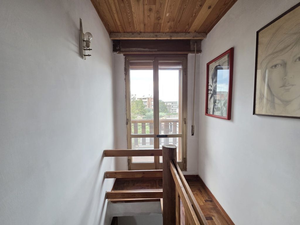 Al piano superiore troviamo la camera da letto, il bagno e un balcone.