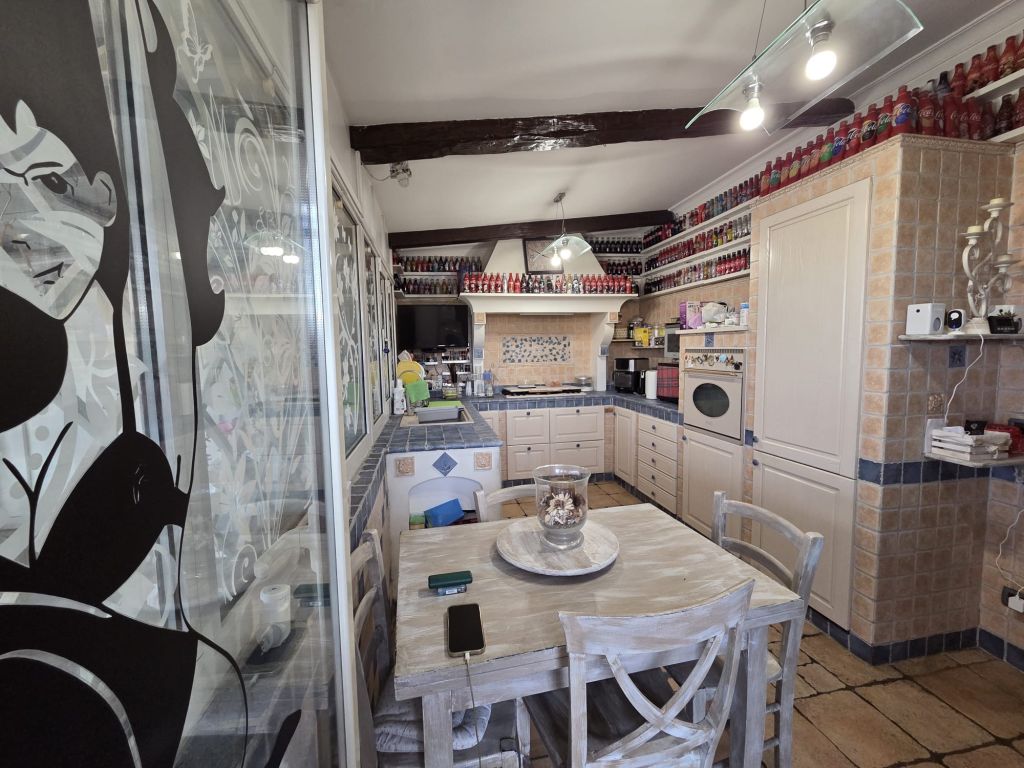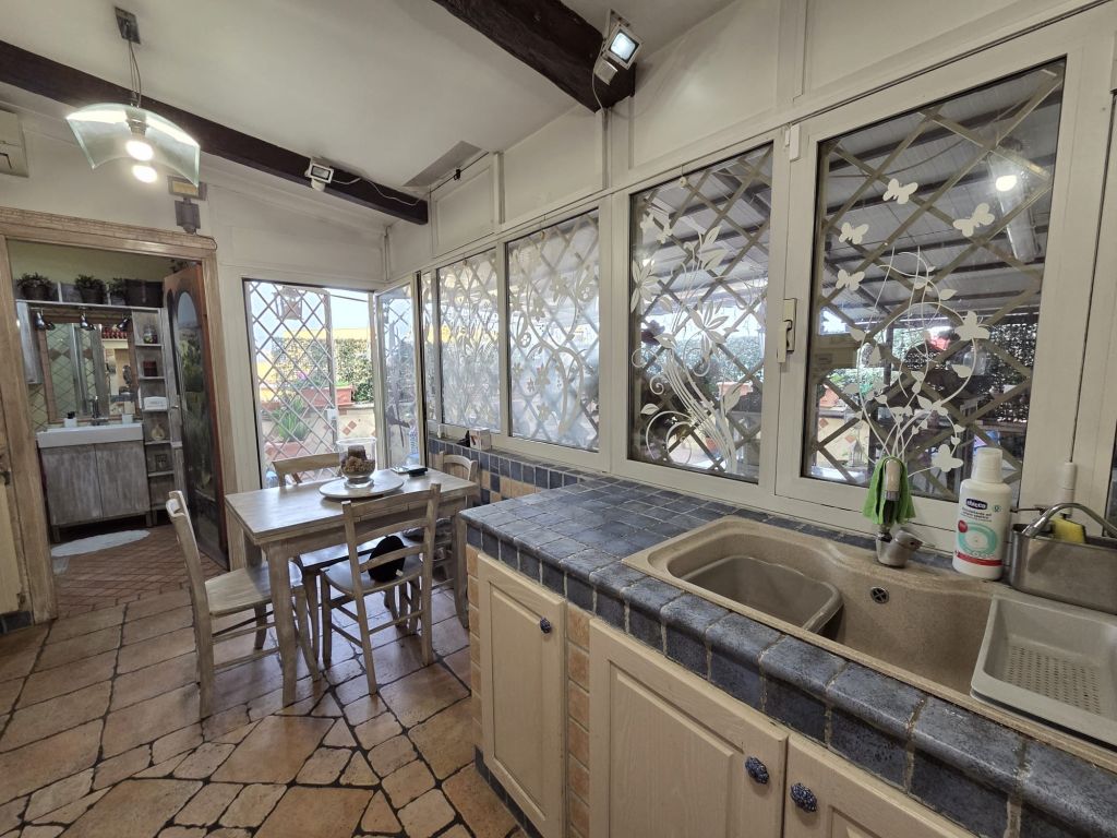 - cucina abitabile in muratura con travi a vista e accesso al terrazzo