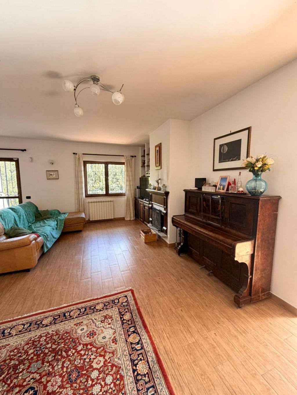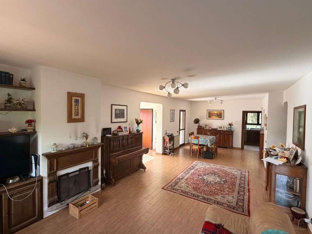 Al piano terra troviamo un ampio ingresso veranda, un salone doppio con camino, cucina, bagno, un balcone, terrazzo e un altro giardino.
